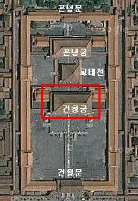 자금성(紫禁城) 내정(內廷)의 정전(正殿)으로 명대(明代)를 거쳐 청(淸) 강희년간까지 황제들의 침실과 일반 집무실로 사용되었던 침궁(寢宮)입니다. 이곳에서 기거한 황제는 명, 청대 황제 중 14명이었습니다. 옹정(雍正)제 때 양심전(養心殿)으로 침궁을 이전하였으며 건청궁은 더 이상 침실로 사용하지 않게된 후 여러 의식을 거행하고 관원들 및 외국사절들을 접견하는 등의 공식적인 국정 수행의 장소로 이용되었습니다.