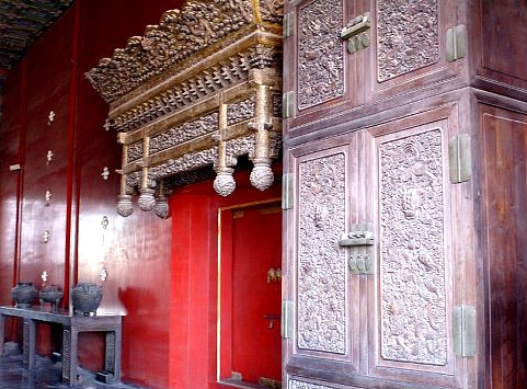 청 옹정제 이전까지는 황제의 암살 방지를 위해 이곳 동난각(東暖閣) 상, 하 양층의 27개 침대에서 매일 바꿔가며 잠을 자던 곳으로 잘 알려져 있습니다.