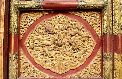 보좌 뒤로는 금칠한 다섯폭 병풍이 둘려있다. 병풍에는 강희제(康熙帝)가 서경(書經), 시경(詩經), 주역(周易)에서 뽑은 명귀(名句)가 새겨져 있는데 이는 황제가 자신을 다잡기 위한 글귀라고 합니다.